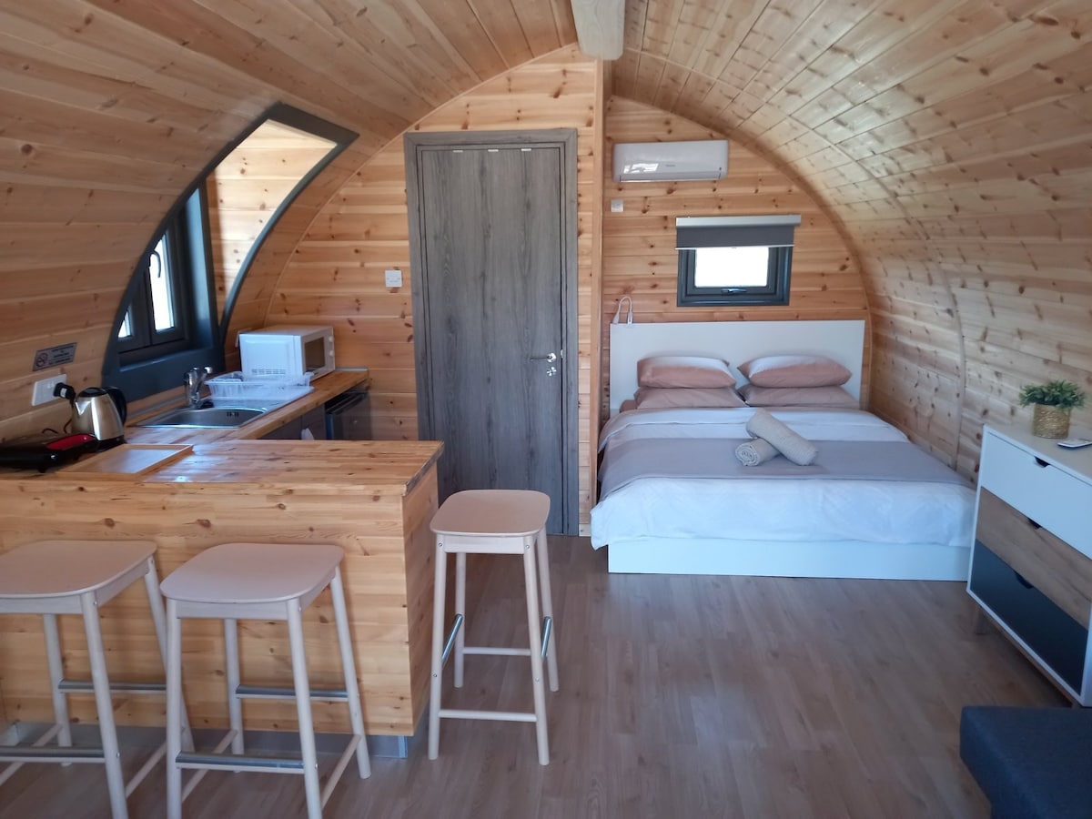 Brvnara s vinovom lozom je novi način glamuroznog kampovanja sa svim potrepštinama i daškom luksuza kako biste mogli da doživite nezaboravno iskustvo. Okruženi prirodom, maslinama i vinovom lozom sa 5 različitih sorti organskog grožđa koje možete da režete i jedete svježe, smokve, limune i sezonsko povrće, šta god da ponudi moju zemlju, tako da možete da jedete sirovo ili svježe direktno sa izvora. Plantaža u okolini pruža miran pejzaž koji umiruje vašu dušu i um.