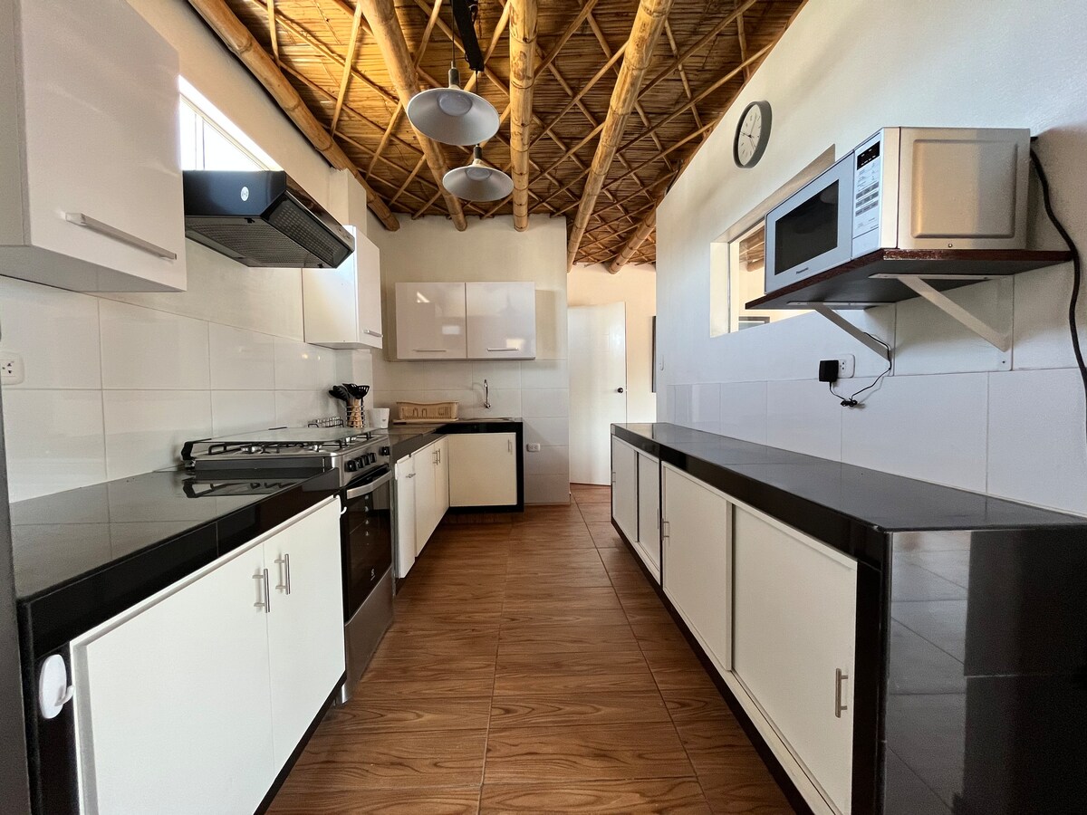 Mnogo više od kuće na plaži; Idealno za porodice ili prijatelje koji žele da uživaju u čarobnom doživljaju. Pet (5) udobnih spavaćih soba, svaka sa svojim kupatilom i TV-om. Bazen i prostor za roštilj, dvokrevetna dnevna soba sa kaminom, 2 trpezarije, a ako volite da kuvate, naša kuhinja je idealna! Na našoj terasi iz snova možete uživati u najboljim zalascima sunca u Parakasu. Vrlo blizu rezervacije i sat vremena do poznatih linija Nazca. Uključuje čuvara i osobu zaduženu za čišćenje.