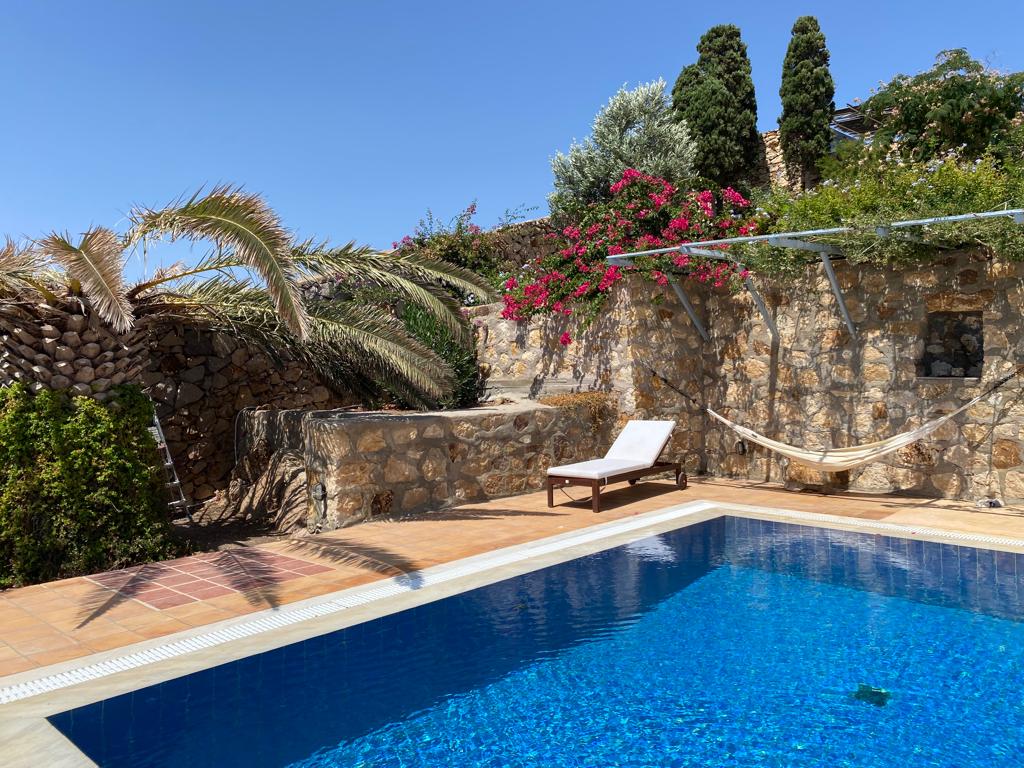 U kući mogu da borave do 3 osobe. Ima 2 spavaće sobe, 1 kupatilo, 1 potpuno opremljenu kuhinju i prostranu terasu. Tradicionalna kuća može da primi 2-3 osobe i ima 1 kupatilo, potpuno opremljenu tradicionalnu kuhinju i spoljašnju trpezariju na prostranoj terasi sa sjajnim pogledom na dolinu Kampos i plažu. Obezbeđeni su sledeći sadržaji: Svakodnevno čišćenje, Magnet za komarce, klima-uređaj, toalet papir, lokalni vodič za restorane, lokalne mape, posteljina, peškiri, parking u ulici, papirni peškiri, osnovni sapuni, grejanje, vodič za lokalne aktivnosti, dnevni boravak, bežični internet. U kuhinji: frižider, toster, pribor za kuvanje, šporet sa 4 prstena, aparat za kafu, šporet / rerna, mikrotalasna rerna, zamrzivač, mikser. Kuće se nalaze na vrhu brda sa pogledom na dolinu Kambos i plažu. Nalazi se na 6 kilometara od glavne luke Skala, na 11 kilometara severno od Kore, na 1.500 metara od sela Kambos i na 800 metara od plaže Kambos. Duga plaža Kambos je najprometnije odmaralište Patmos. To je prelepa plaža, sa čistim, plitkim vodama i obiljem hladovine drveća. Tu su i suncobrani i ležaljke, vodeni sportovi i restorani na plaži.