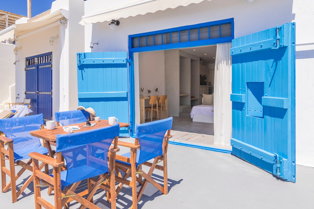 Think of a paradise. With the stunning sea view, Cycladic design and distinctive contemporary finishing touches. This is the place! Our accommodation is located in Mandrakia Village. The sea is just 50m away. It consists of one bedroom with one queen bed, fully equipped kitchen and a bathroom (with complimentary toiletries), smart TV, air conditioning and Wi-Fi. You can enjoy food & drinks on its terrace with spectacular view of the deep blue Aegean. The port of Adamas is 5 min away with a car.