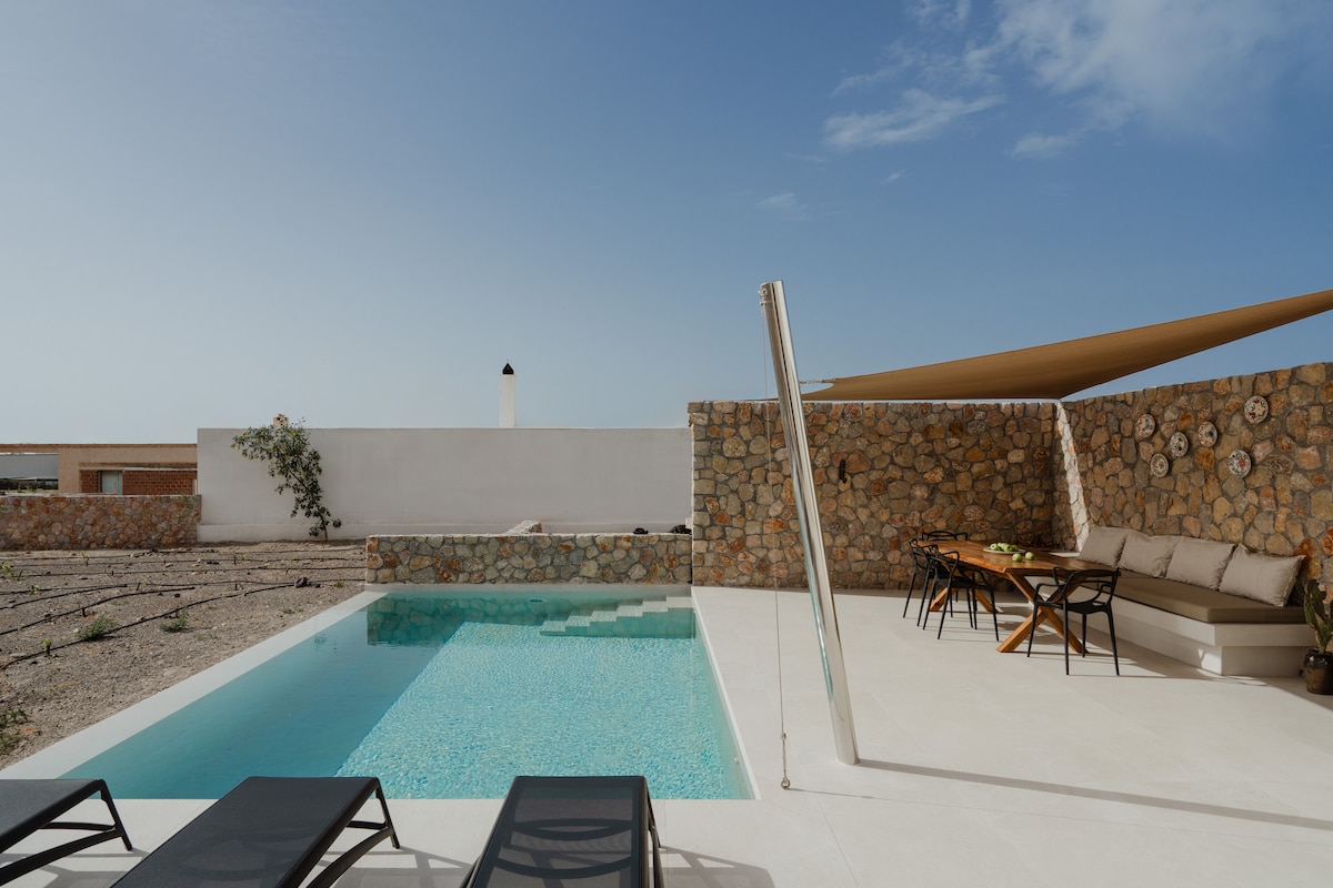 Ambeli Villa is located in the region of Megalochori, with a total living space of 530sq.m. Novoizgrađena zgrada koja pokriva sve zvanične smjernice kako bi se povećala bezbjednost naših gostiju, nudi četiri elegantne spavaće sobe i 4 kupatila, koja mogu da prime do 9 gostiju. Bazen i vanjski grijani đakuzi pružiće vam osjećaj opuštanja i velnesa. „Domaći doručak” i dnevno pospremanje su uključeni u cijenu