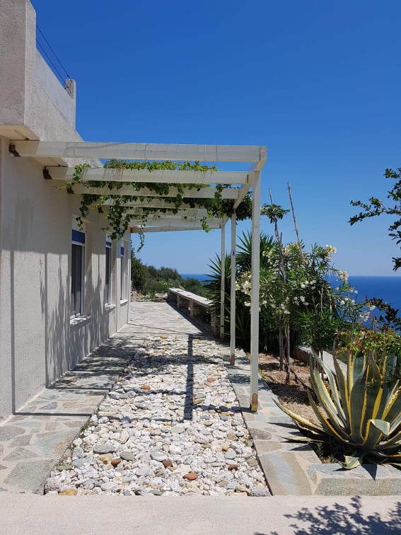 The house is about 40sq.m, with 1 bedroom with dooble bed, living room with two double sofabeds, 1 small kitchen, 1 bathroom and yard-balcony with beautiful sea view. The house has also an outdoor shower and large parking area. The view is amazing. The blue and crystal clean water of the Aegean sea is on your sight from almost everywhere, even from your bed!