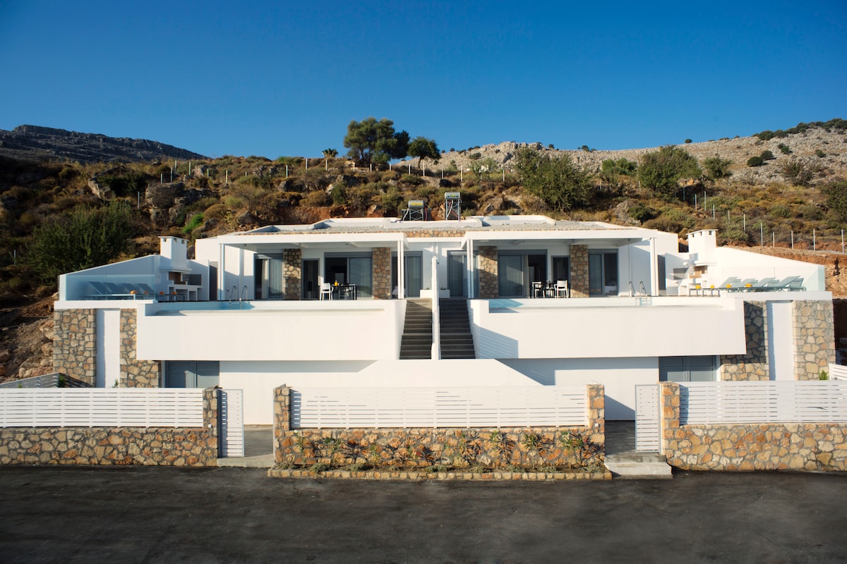 Ova vila je idealan izbor za parove ili porodicu od najviše šest članova. Smješten na brdu u privatnom vlasništvu, s pogledom na zaliv Vlycha, sa neometanim i prelijepim pogledom, nudi ekskluzivno i luksuzno okruženje. Istovremeno, sa manje od pet minuta vožnje, možete doći do Lindosa, koji je najtraženije odredište na ostrvu i prilično se smatra jednim od najpoznatijih – slikovitih sela u Grčkoj.