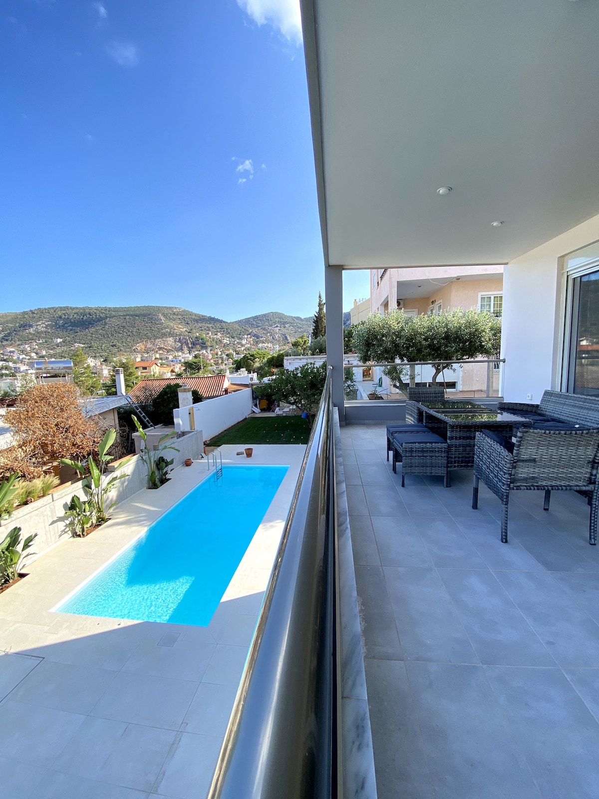 Novi moderno opremljen penthaus ispred mora u odmaralištu Porto Rafti u Atici, 20 minuta vožnje od aerodroma u Atini. Stan od 120 m2 sa ogromnom verandom sa neverovatnim pogledom na more. Jacuzzi i ogromne sofe na verandi, kao i izuzetan dizajn kuće, omogućiće vam da se opustite i uživate u boravku kod nas. Stan se nalazi u centralnom delu odmarališta i ide direktno na šetalište sa mnogim kafićima, restoranima i prodavnicama za vašu večernju šetnju.