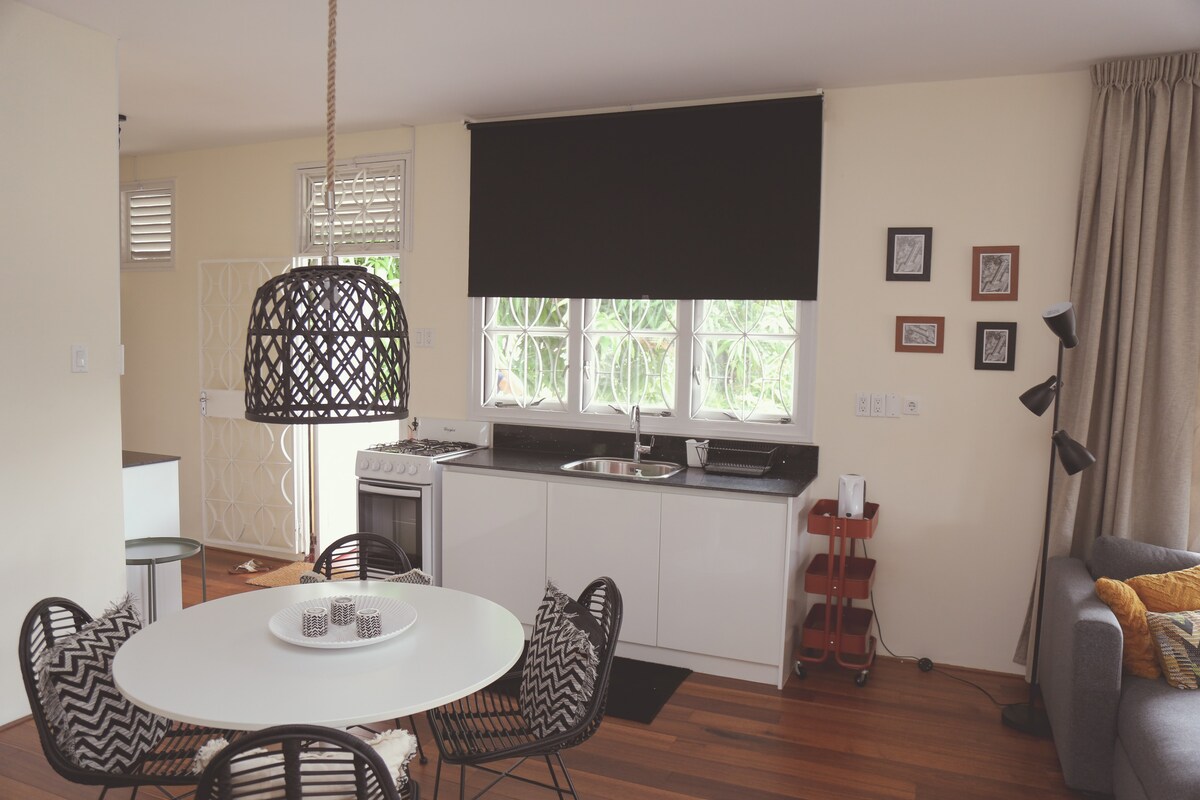 Solara – Dragulj Paramariba Moderan, udoban studio apartman u srcu grada, na pješačkoj udaljenosti od trgovina, restorana i centra grada. Može da spava 2–4 osobe, sa bračnim krevetom na razvlačenje, kaučem na razvlačenje i kuhinjom. Sigurno, bezbjedno i lijepo dizajnirano. Dostupni su bicikli i iznajmljivanje automobila po sniženim cijenama. Savršen odmor u gradu. Mali, udobni i dizajnirani da se osjećate kao kod kuće.