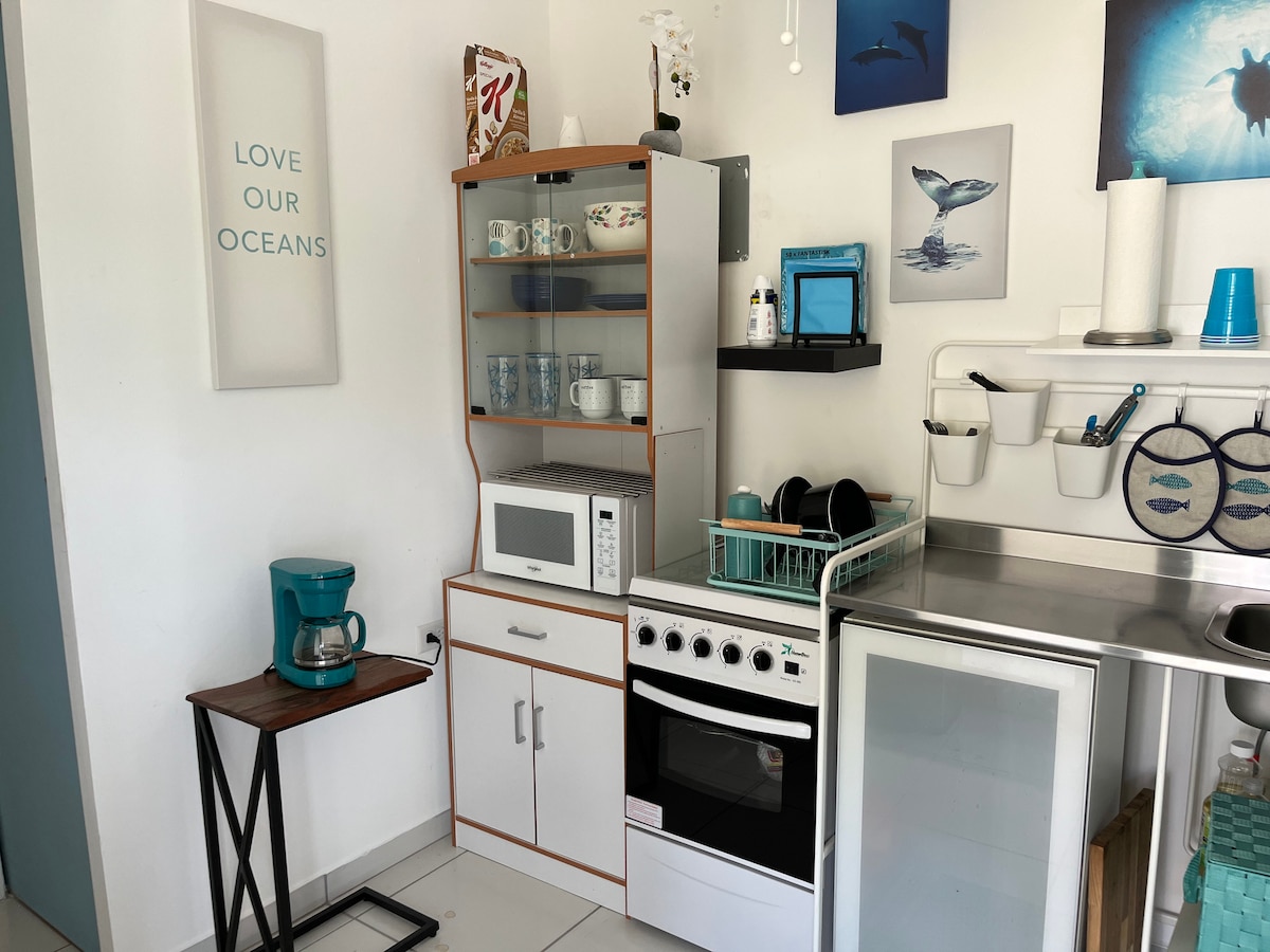 Stan za dvije osobe, 1 bračni krevet ,kompletna kuhinja, privatni balkon sa prelijepim pogledom na okean, bazen, pasivni prostori, nalazi se 1 minut hoda do grada la parguera gdje možete pronaći smještaje za zabavu na vodi, obilaske različite plaže parguera, obilaske ronjenja s maskom i disalicom, ture ronjenja, iznajmljivanje čamaca, obilaske biozvišenog zaliva, restorane i noćni život.