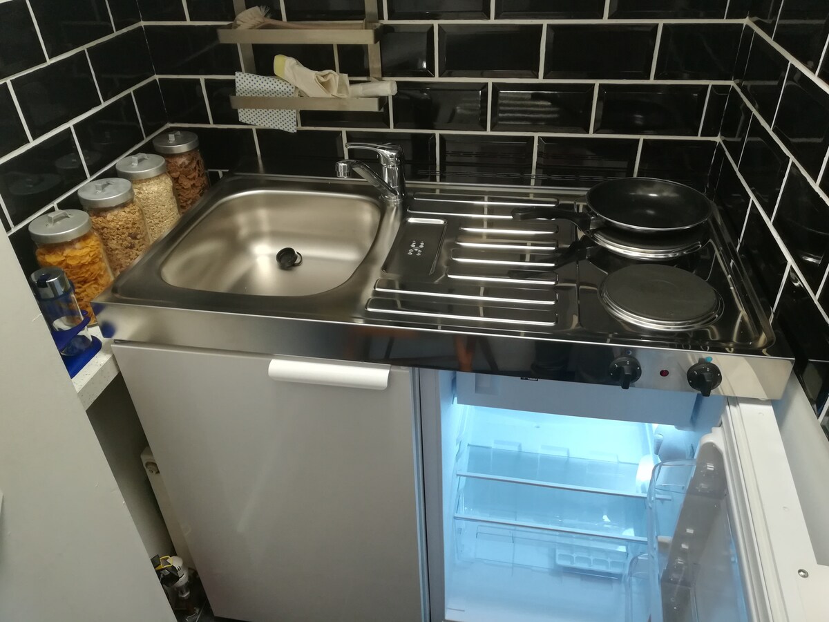 Imamo divan prostran, miran, svetao studio u prizemlju, određeno parking mesto, brzi Wi-Fi, sopstveni privatni ulaz sa spoljašnjom terasom. Uživajte u pripremanju sopstvenih obroka sa pločom za kuvanje, kombinovana mikrotalasna rerna/rerna, potpuno opremljena kuhinja. Osvežite u tuš kabini, spavajte u udobnom dušeku Samo 10 minuta hoda do Poole Parka, Ešli Kros, 20 minuta do Centralnog Pul-a, sa 10 minuta vožnje do nagrađivanih plaža Ferri & Poole .Durdle vrata i Purbecks na dohvat ruke