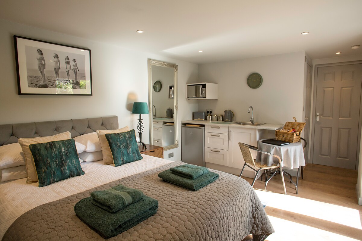 Quite getaway, with everything needed for your stay. Stylish modern, stand alone studio, with private Garden. Modern shower room & kitchenette, with dining space and King size bed. The garden is gated off from the main garden for privacy. You have your own dining and lounging area. We do have two lovely little dogs who are very friendly and also the occasional visiting friendly family dogs, who may be around in the garden to say hello when you are coming in or out of The Studio.