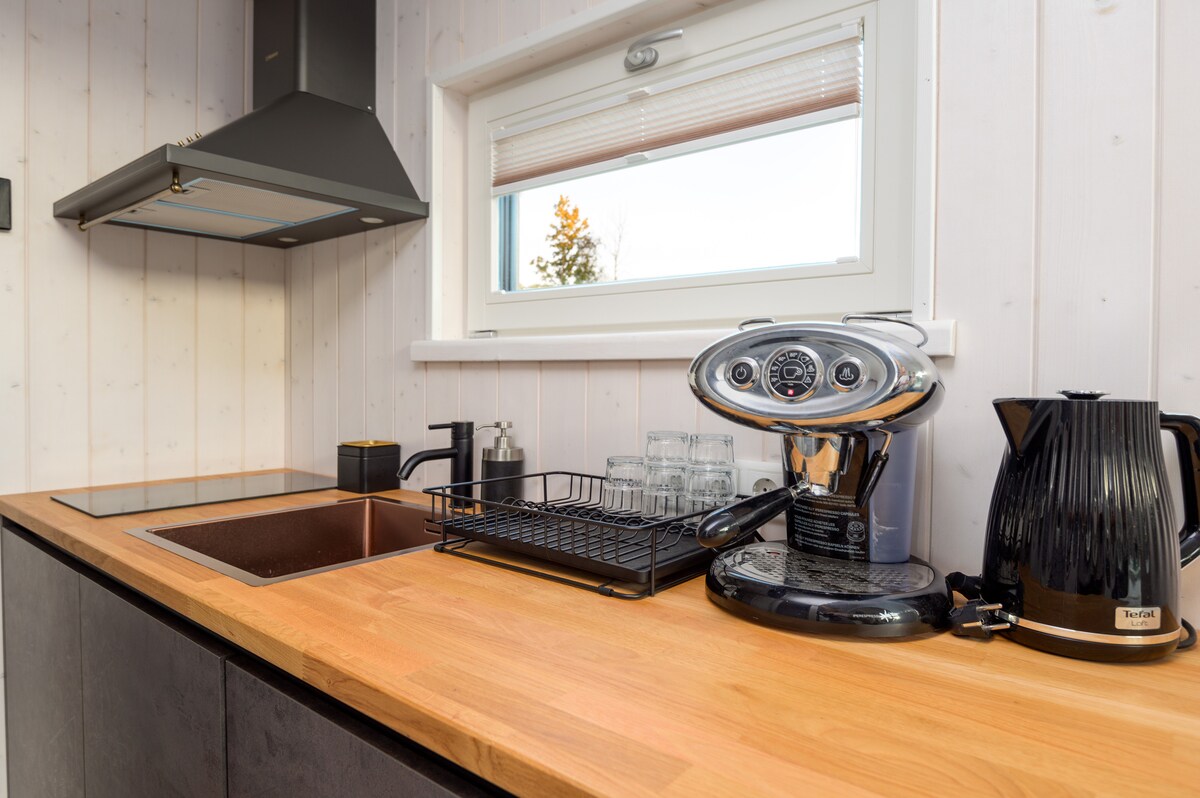 Enjoy a relaxing vacation in our environmentally friendly eco house. The hot tub with a massage function on the terrace offers a private spa experience. A wood-heated fireplace adds coziness. The house is made of natural materials, and great attention has been paid to preserving and reusing the environment during the construction of the house. For example the terrace is made from household waste. The hot tub is available for an additional fee 59€ (01.05 – 31.08 price 79€)