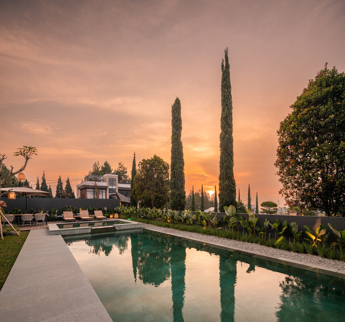 Wangiterrace, mirna vila na brdu smeštena u bujnom zelenilu Daga u Bandungu. Okružen visokim drvećem i prirodnim ljepotama nudi maglovita jutra, svjež planinski vazduh i hladnu klimu. Bilo da uživate u mirnom jutru na terasi ili istražujete obližnje kafiće i staze u prirodi, WangiTerrace je osmišljen za opuštanje i povezivanje s prirodom. Idealna za porodice, parove ili male grupe, naša vila spaja udobnost i mir u jednoj od najslikovitijih četvrti Bandunga