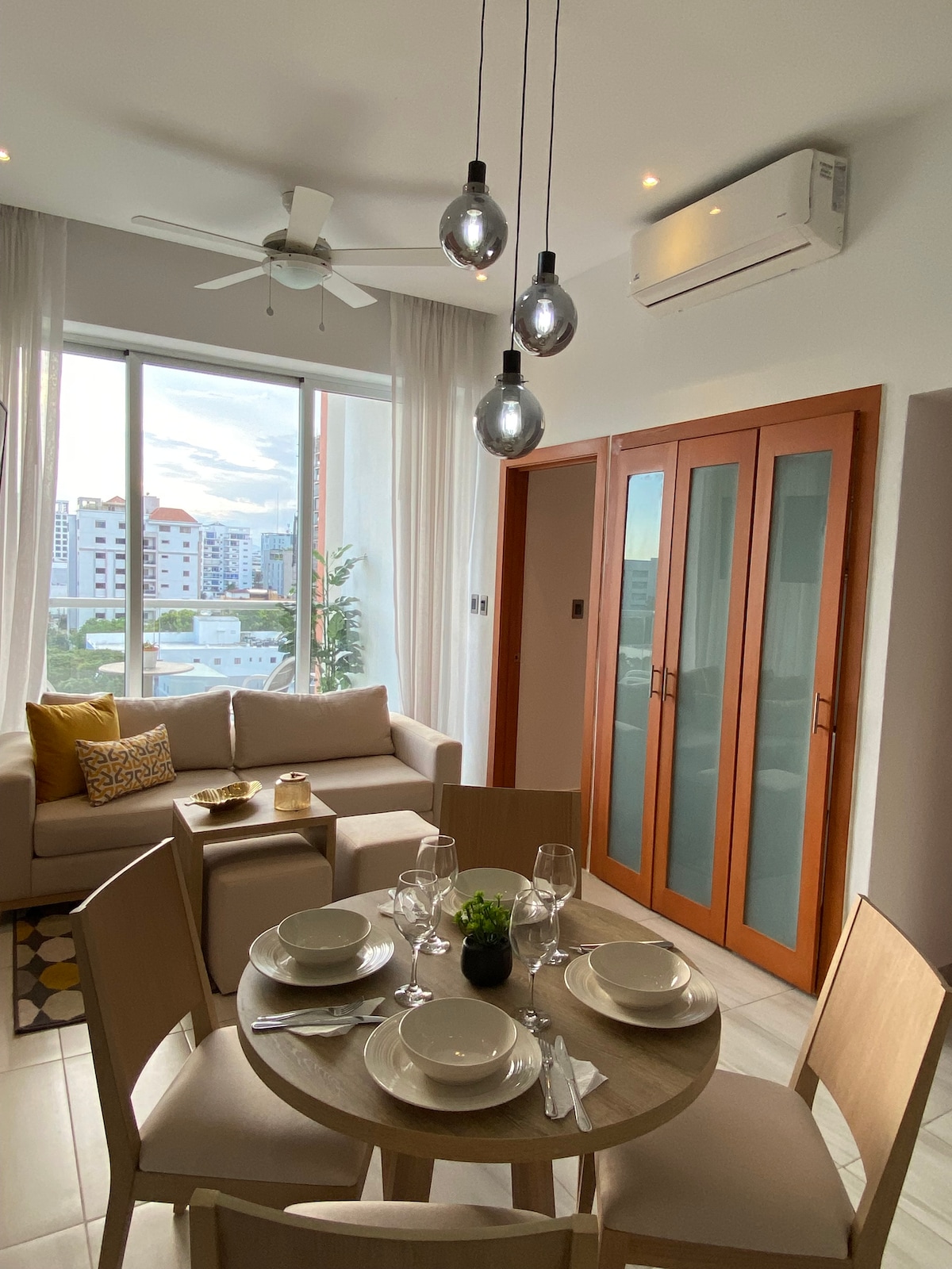 Alojamiento, Moderno Tranquilo y Céntrica en Piantini📍✨ Uživajte u udobnosti i privilegovanoj lokaciji u najekskluzivnijem dijelu Santo Dominga. Opremljen je WI-FI MREŽOM, klima-uređajem, TV-om sa Netflix-om, šporetom, aparatom za kafu, frižiderom, posuđem i tiganjem, kao i pametnom bravom, liftom, protivpožarnim alarmom i danonoćnim obezbjeđenjem. 🚗 Privatni parking i samo 1 minut od Nacionalnog supermarketa i Plaza Central u istoj ulici. Okruženi najboljim restoranima i pabovima u sektoru Pjantini