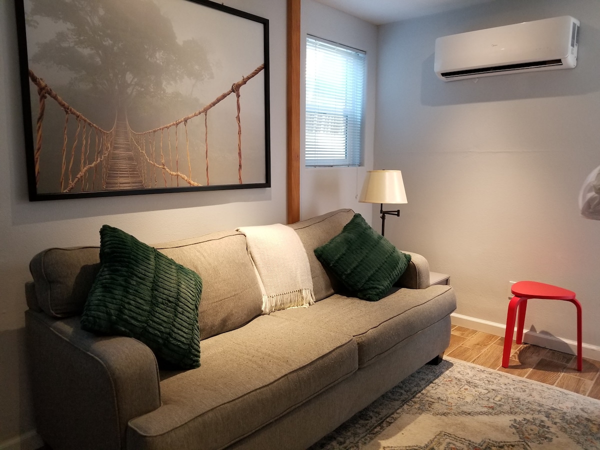 Dobro došli u naš potpuno novi privatni studio. Ovaj mali studio je savršen za solo putnike. Ima privatni ulaz i nalazi se iza istorijskog doma iz 1940. godine u mirnoj i bezbjednoj četvrti. Ima besprekorno čisto kupatilo i čajnu kuhinju(bez šporeta). Čajna kuhinja ima mini frižider, mikrotalasnu rernu, toster rernu, električni za vodu i dozator za kafu sa jednim pivom. Prostor je namijenjen za jednog gosta i opremljen je visokokvalitetnim bračnim krevetom , stolom pune veličine i fiokama pune veličine.