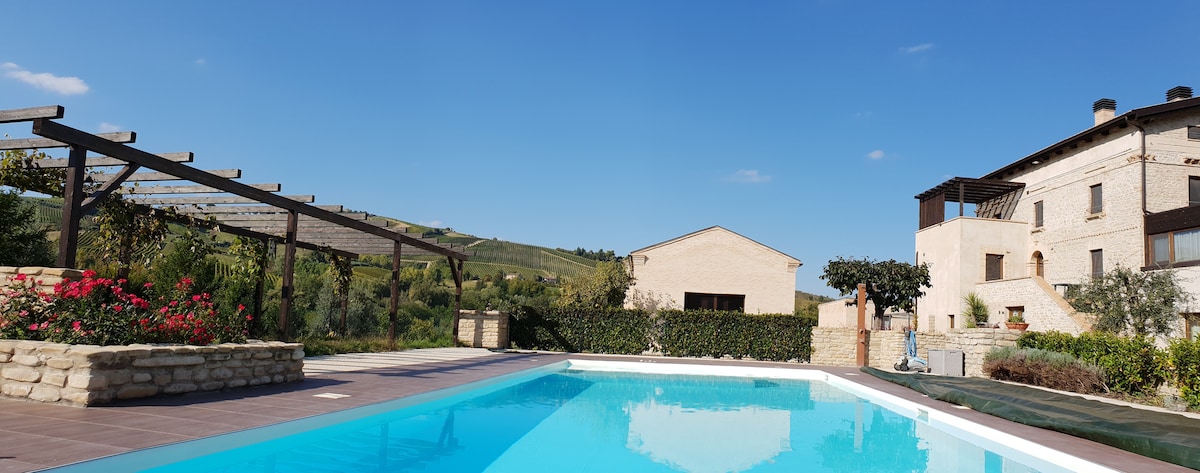 Pobjegnite u naše šarmantno utočište u srcu Abruca, idealnom za parove koji traže romantiku ili mali porodični odmor. Savršeno pozicioniran između mora i planina, naš dom nudi zadivljujuće prirodno okruženje. Uživajte u ekskluzivnim sadržajima na otvorenom: osvježavajućem bazenu, opuštajućoj hidromasažnoj kadi, udobnom ognjištu i trpezariji na otvorenom. Družite se s prirodom i upoznajte naše prijateljske domaće životinje - koze, kokoške, patke, mačke i našeg simpatičnog psa.