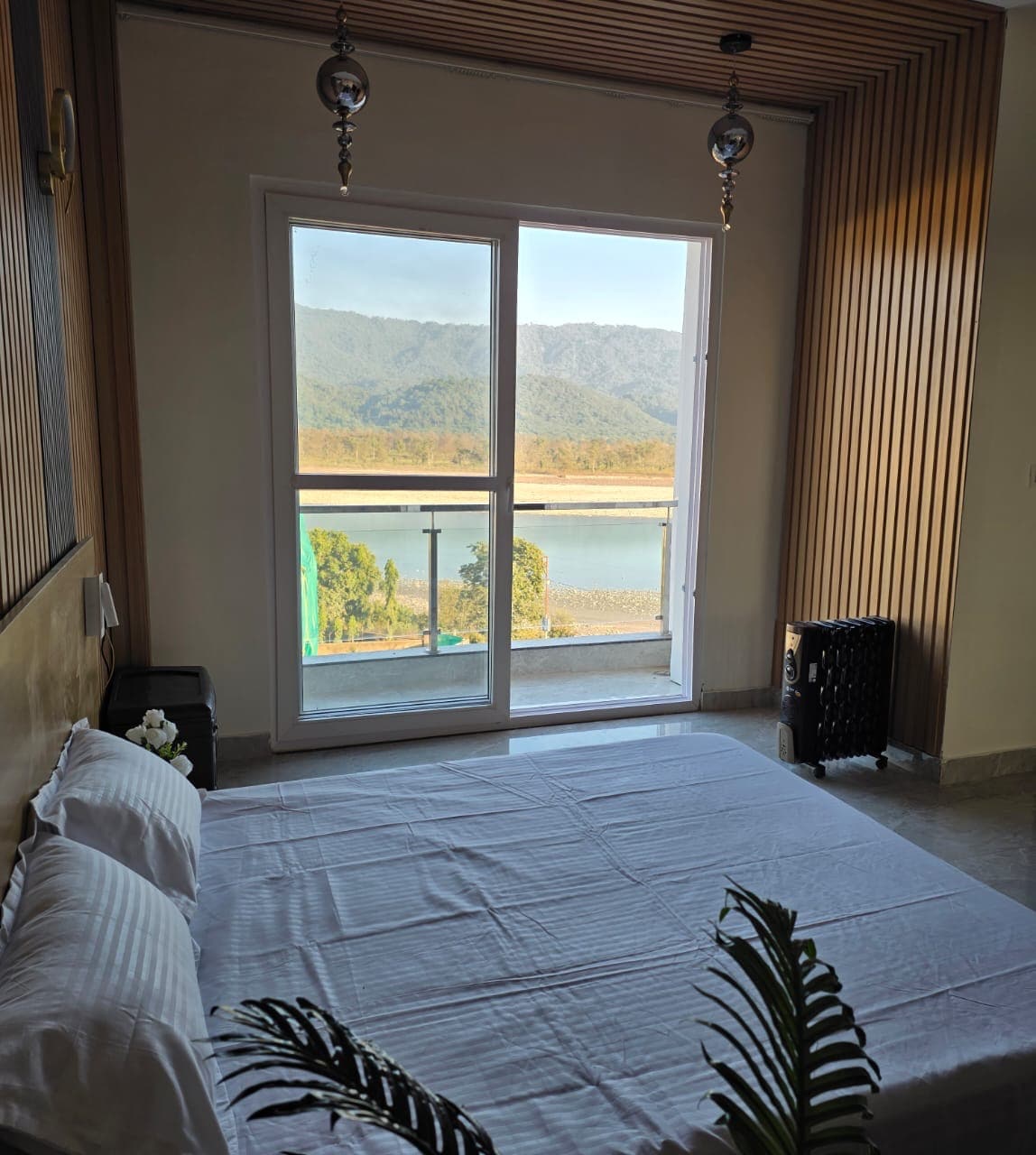 Zakoračite u utočište u kojem se moderna udobnost susreće sa spokojnim duhom rijeke Ganga. Smješteno na samo nekoliko koraka od rijeke, ovo elegantno i umirujuće utočište dizajnirano je za putnike koji traže mir, podmlađivanje i dašak luksuza. Probudite se uz meku sunčevu svjetlost koja prodire kroz velike prozore, uživajte u jutarnjem čaju na privatnom balkonu uz povjetarac sa rijeke i opustite se u pažljivo uređenim enterijerima koji spajaju eleganciju, udobnost i prirodu.