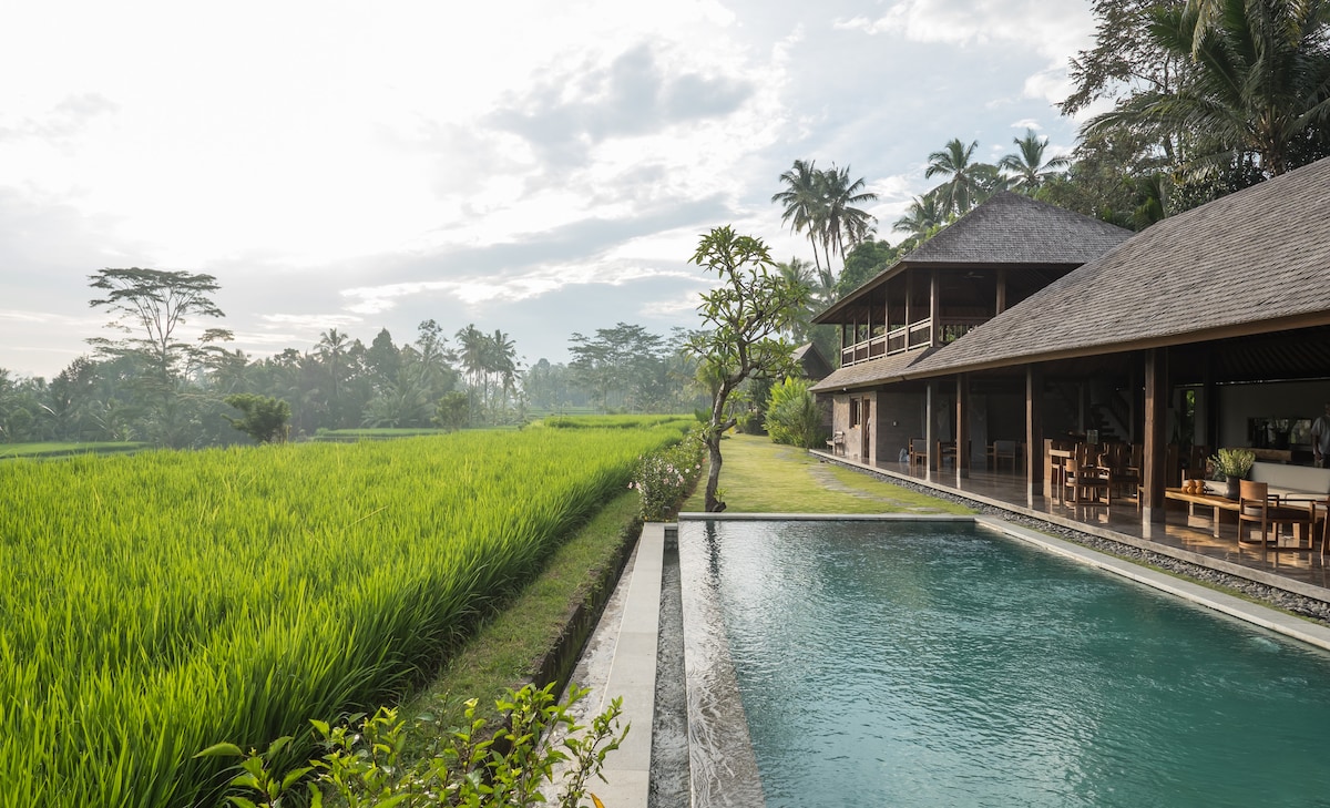 This villa is ideal for families, friends, couples who want to escape their busy lives and chill out in a peaceful getaway, or for the discerning traveler who desires privacy and tranquility. A beautiful villa with five bedrooms, a vast garden, large open lounge, dining area, kitchen space, overlooking a breathtaking 180 degree rice field view, completely engulfed in nature.