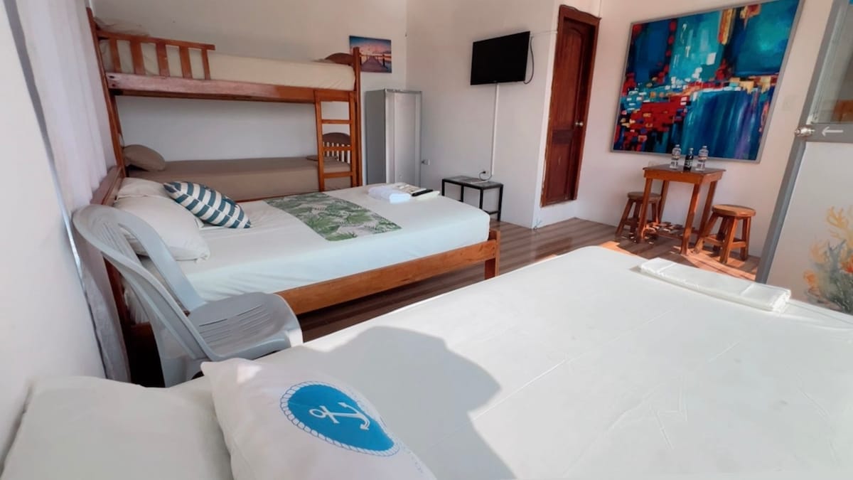 Sobe se nalaze unutar hotela La Playa Lodge, kompleksa koji je okrenut prema moru, koji se nalazi 1 km od grada Cojimíes i 20 minuta od Pedernalesa. Imamo direktan pristup plaži, spavaće sobe imaju klima-uređaj, TV kablovsku, privatno kupatilo sa tušem sa toplom vodom. Imamo bazen, parking i restoran. WI-FI je besplatan i nalazi se u restoranu, nemamo WI-FI u sobama. Vrijeme prijave za 14:00 i vrijeme odjave 12:00