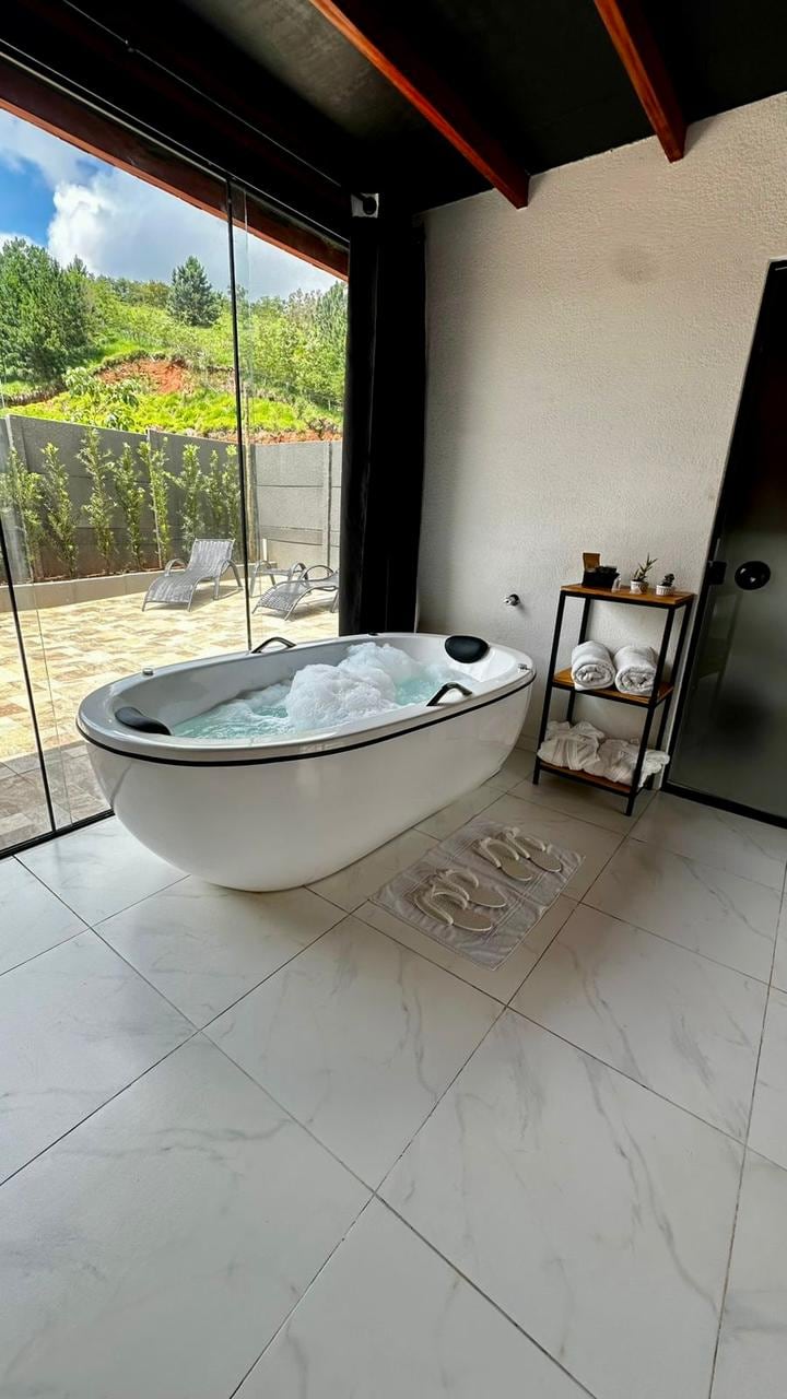 Romantični odmor usred prirode, idealan za parove. Planinska kuća u švajcarskom stilu (u obliku slova A) na ranču okruženom plantažama kafe, s privatnom rijekom i vodopadom. Ima spoljne kade sa pogledom na Seru da Mantikeiru, unutrašnji đakuzi, ognjište, roštilj, teren za plažni tenis, ljuljašku, suvu saunu sa pogledom i unutrašnji projektor sa ekranom od 100 inča.