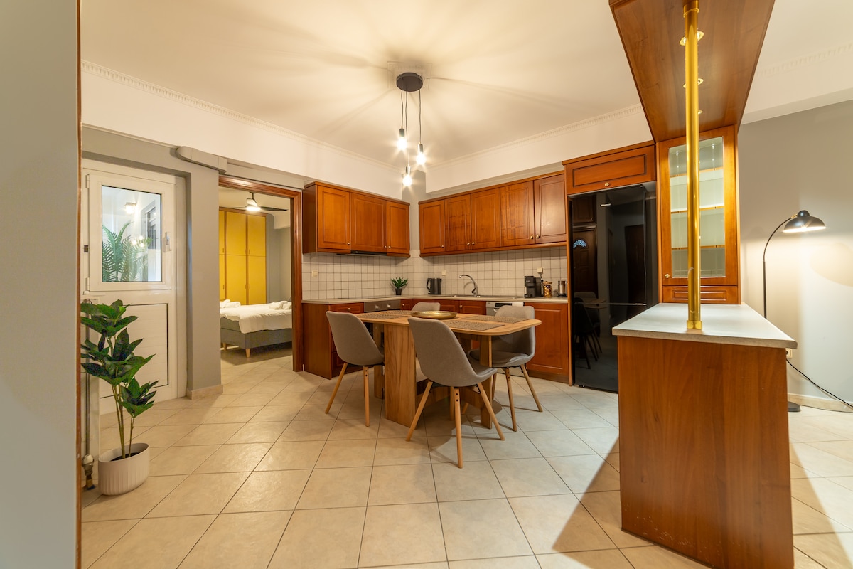 Udoban stan u prizemlju od 47 kvadratnih metara sa pogledom na unutrašnje dvorište, koji se nalazi u Paleo Faliru, pored morske strane i autobuske/tramvajske stanice. U elegantnoj četvrti duž morske obale sa parkovima, marinama, plažama, barovima i restoranima. Super pijace, namirnice, mesnica, udaljene su 100 metara. Idealna lokacija jer je veoma blizu centra grada i luke Pireaus (30 minuta od oba). To je mirno, bezbedno i opušteno mesto gde možete da uživate na morskoj strani dok ste u blizini istorijskog centra grada.