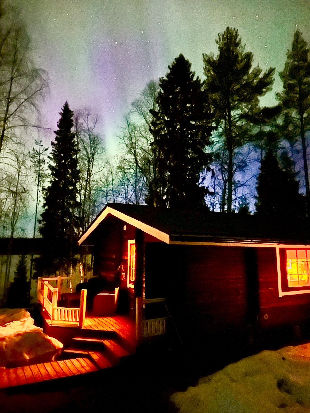 Pobjegnite u autentičnu finsku brvnaru pored jezera i okruženu šumom. Uronite u kulturu i spokoj Laponije. Savršeno za ljubitelje prirode, možete uživati u polarnim svjetlima, roštilju, otvorenoj vatri, sauni, a ako se usudite da slijedite tradiciju, zaronite u zaleđeno jezero ❄️😊 Do brvnare možete doći 10 km zemljanog puta (20 km Rvn). Zbog nepravilnog održavanja puteva i nepredvidivih vremenskih uslova, preporučuje se automobil sa pogonom na sva četiri točka. Nudimo uslugu prevoza ako je potrebno.