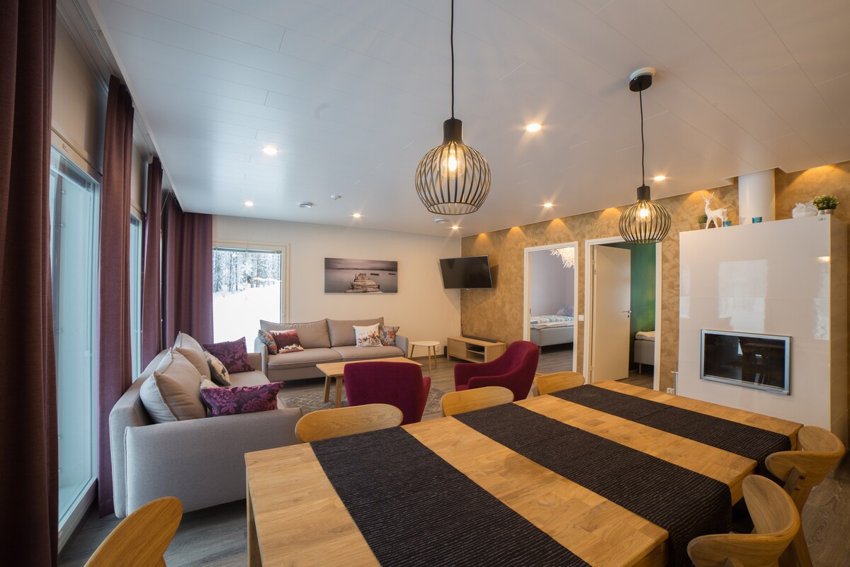 Zimski apartman iz snova – luksuz i opuštanje u blizini centra grada Ovaj visokokvalitetan i besprekorno čist stan može da primi do četiri gosta i ima privatnu saunu i udoban balkon. Lokacija je savršena: mirno okruženje osigurava mirne noći, a centar grada sa svojim uslugama i atrakcijama je udaljen samo nekoliko minuta hoda. Stan na 2. spratu u skandinavskom stilu ima veliki dnevni boravak, nišu sa bračnim krevetom, saunu i namješten balkon. Potpuno opremljena kuhinja.