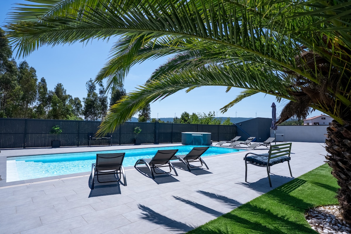 ALL INCLUSIVE EXPERIENCE **Welcome to a peaceful retreat near Coimbra in Portugal’s wine country.** Relax in a charming home with cozy, stylish bedrooms and a spacious living area. Step outside to a **sparkling pool, surrounded by lush grass and sun chairs**, perfect for soaking up the sun. Enjoy local wines, explore historic villages, visit renowned wineries, and savor regional cuisine. Close to Coimbra and scenic nature trails, it's the ideal getaway for relaxation and adventure.
