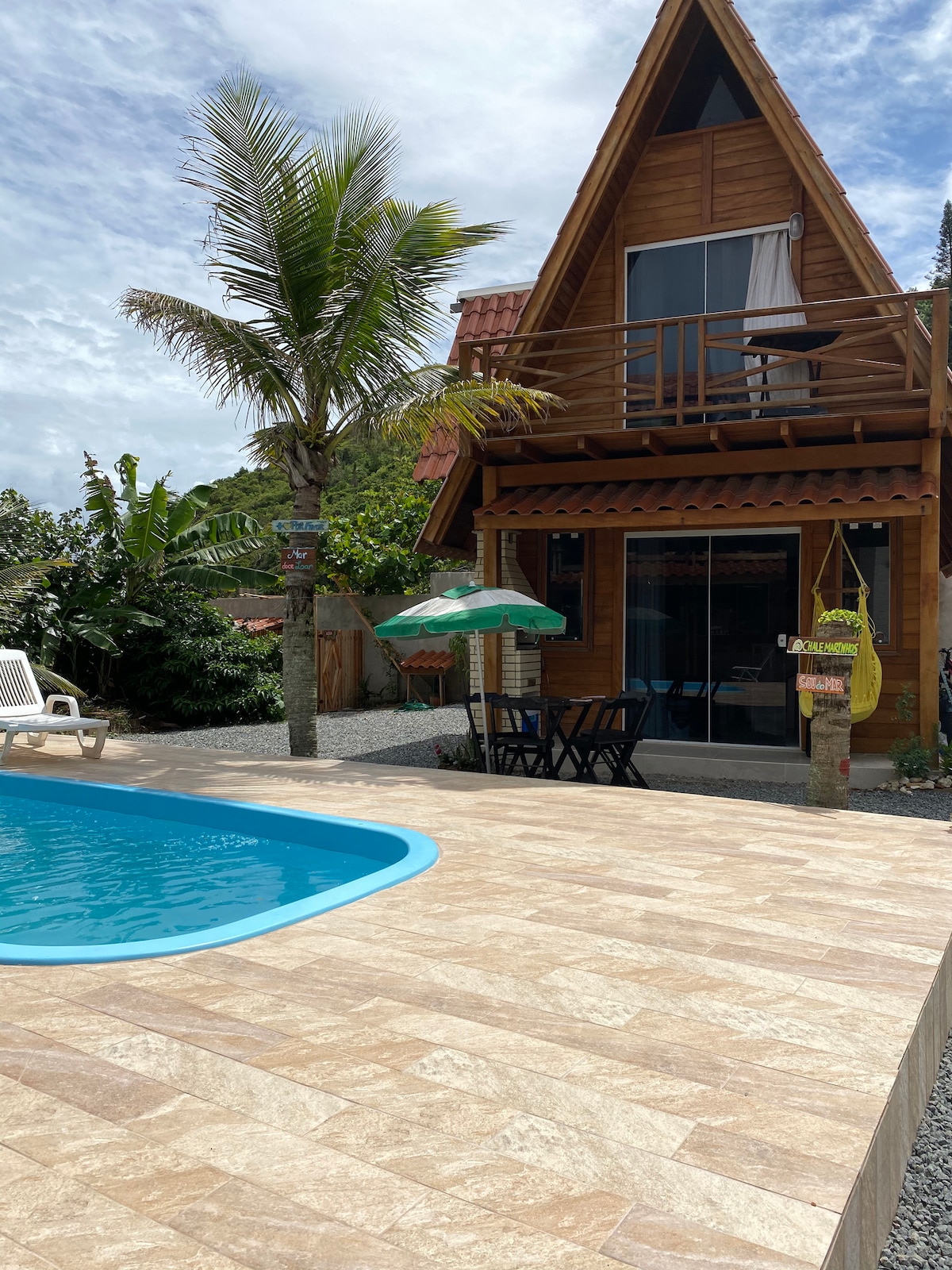Rustikalna kuća usred zelenila u Prainha de Sao Migelu, u Penhi, sa odličnom infrastrukturom. Smještaj se nalazi na nekoliko koraka od staze Galheta, 400 metara od blagih voda plaže i 5,5 kilometara od parka Beto Karero. Sa balkona se možete diviti svim ljepotama mora i najljepšim zalascima sunca, posebno ljeti. Na nebu vidimo avione koji polijeću sa aerodroma Navegantes, udaljenog 10 kilometara. Mjesto gdje možete uživati u najboljim trenucima života!