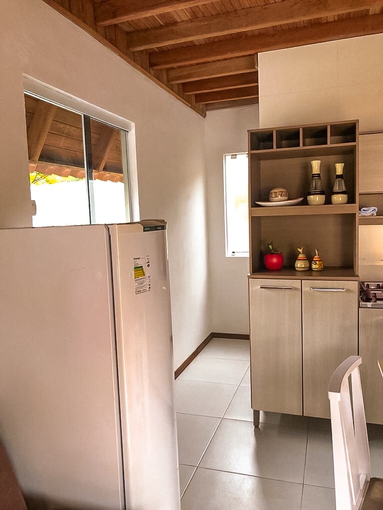 Kuća je rustikalna kuća u nizu koja može da se ugosti do 6 ljudi. Na prvom spratu, dnevna soba,kupatilo i kuhinja sa šporetom na drva. Na spratu je velika soba sa mezaninom. Na oba sprata balkoni gledaju na predivan zalazak sunca. Nalazi se na manje od 1 km od Praia Grande (prelepe bele peščane plaže) i Armação de Itapocorói (zaliv zanatskih ribara, sa mirnim morem, odlična za praksu stajanja). Takođe je blizu parka Beto Karero, koji je udaljen samo 3 km.
