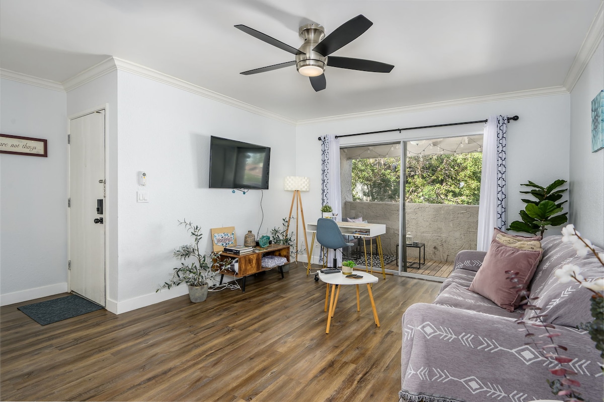 1964 Haver moderni stan iz sredine veka odiše stilom i odražava našu investiciju u zeleniju zemlju: prirodni gas, zidovi od blokova sa ubrizganom penom, prilagođena čelična vrata, obojeni betonski podovi, pustinjske biljke, veštačka trava i moderna oprema smanjili su potrošnju vode 600.644 gal/god! Stan ima novu kuhinju, radne površine i pozadinu od recikliranog kvarca, ostrvo od recikliranog egzotičnog kamena, industrijske svetlarnike i LED osvetljenje. Pešačenje ili vožnja Uberom od 2 minuta do divnih restorana i barova.