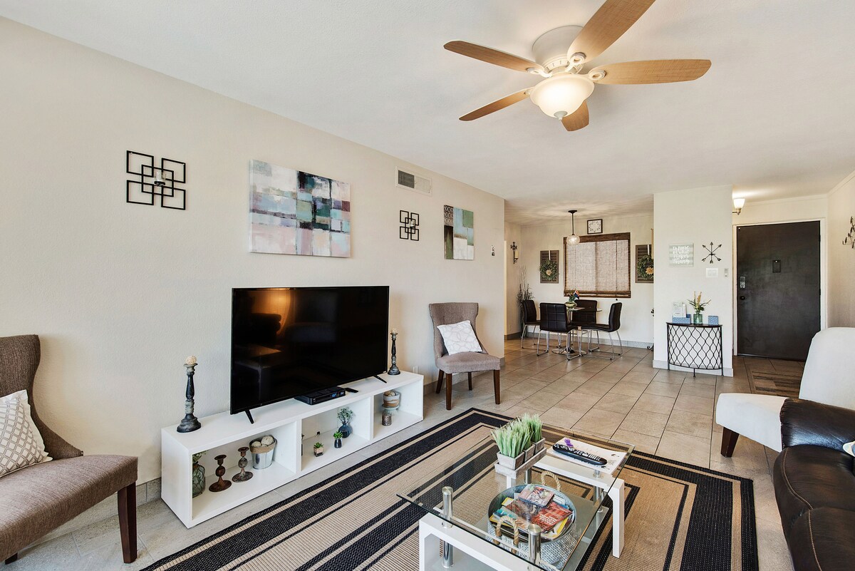 Uživajte u elegantnom iskustvu u ovom stanu na centralnoj lokaciji. Blizu petlje 101(jednostavan pristup Skotsdejlu/Peoriji) i blizu I-17 za lak pristup aerodromu Skaj Harbor (PHX), centru Feniksa, trpezariji, kupovini, golfu, jezeru Pleasant za vožnju kajakom i stadionu State Farm. Ceo stan je vaš da uživate, uključujući TV sa ravnim ekranom, udoban kamin, električni, potpuno naslonjeni kauč u prijatnom prostoru. Kuhinja je kompletno opremljena za 4 osobe. Na raspolaganju su vam peškiri za bazen.