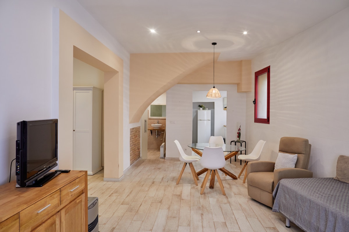 Enjoy this bright 70 m² loft located in the heart of Peralada's historic center. Fully equipped and ideal for romantic or cultural getaways. Accommodates up to three guests and includes private parking for bikes and 2 motorbikes. Just 50 m from the Church of Carme and 150 m from the Castle and its famous casino. Perfect for exploring the Music Festival, playing golf, or visiting Figueres and Cadaqués, both closely tied to Dalí. Beaches are just a 15-minute drive away.