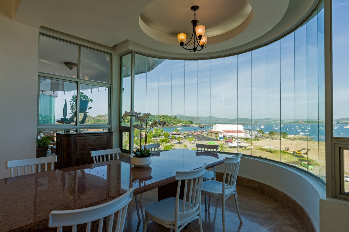 Doživite luksuz i zadivljujući pogled u potkrovlju Captain's Canal View, u vlasništvu pilota Panamskog kanala i dizajniran za posmatranje brodova. Ovaj jedinstveni stan nudi panoramske poglede na gradski pejzaž Panama Beja s jedne strane i užurbani kanal s druge strane. Smješteni na Amador Causeway-u, na korak ste od živopisnih restorana, barova i terminala za kruzere. Vaš boravak uključuje ekskluzivan pristup StandUp Panama, gdje možete da veslate u zoru na kanalu za nezaboravan doživljaj.