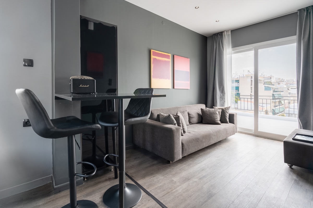 Miran i elegantan, dvosoban stan,površine 66 kvadratnih metara, potpuno opremljen, VDSL internet 50 Mbps, ugošćava 1 do 5 osoba. Pristup peške do svih glavnih arheoloških nalazišta, dva bloka od stanice metroa Monastiraki i komercijalnog centra grada.