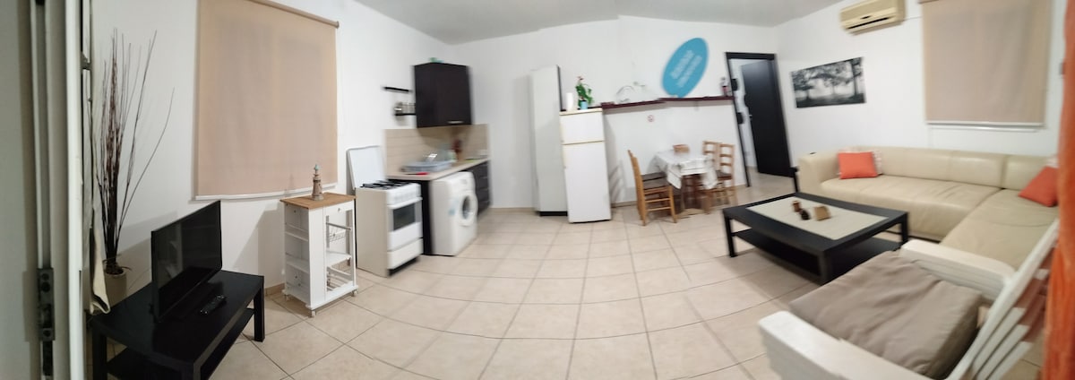 Prekrasna gostinjska kuća, studio u sigurnosnom kompleksu na plaži u oblasti Pervolija. Spava 2 osobe na bračnom krevetu. Prekrasan veliki bazen i bašta koja se dijeli samo sa mojom kućom, živim u susjedstvu. Kompleks sa teniskim terenom . Čisto i uredno. 20 metara od peščane plaže. Lokalne turističke atrakcije , svetionik Faros, u blizini tradicionalnog grčkog sela Pervolia, 10 minuta vožnje do grada Larnaka, u blizini plaže Makenzi i 10 minuta vožnje od aerodroma Larnaka.