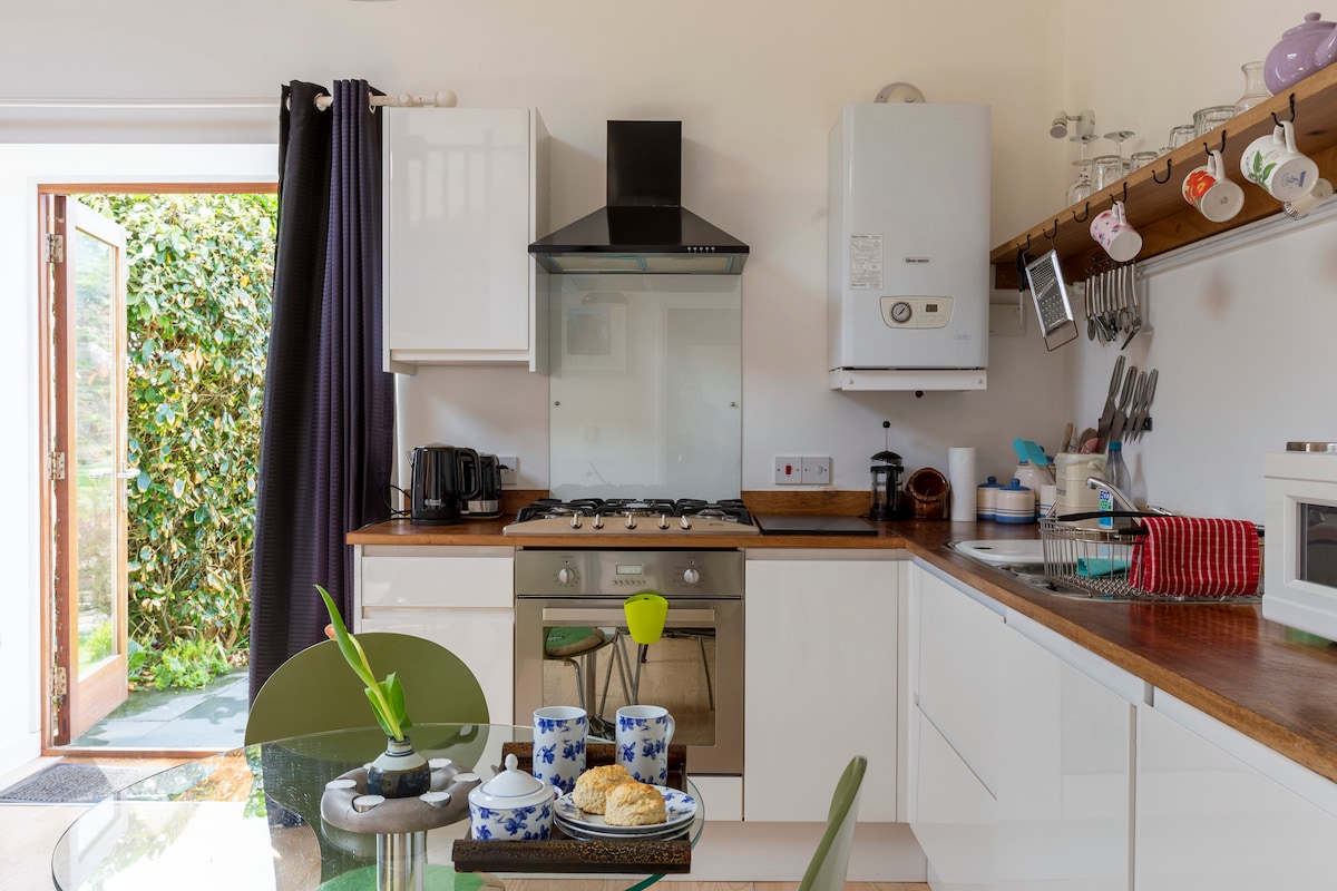 The Salty is a beautiful contemporary, refurbished ambar in a spectacular coast location with panoramic views views Mounts Bay and St Michael's Mount. Dnevni/trpezarijski/kuhinjski prostor je prozračan i prostran sa velikim panoramskim prozorom koji se može u potpunosti otvoriti. Postavite trpezarijski sto ispred prozora i uživajte u divnom živopisnom obroku. Ako je hladno, trostruko staklo ga održava toplim, a podno grijanje i bučni plamenik na drva pomažu da se završi slika.