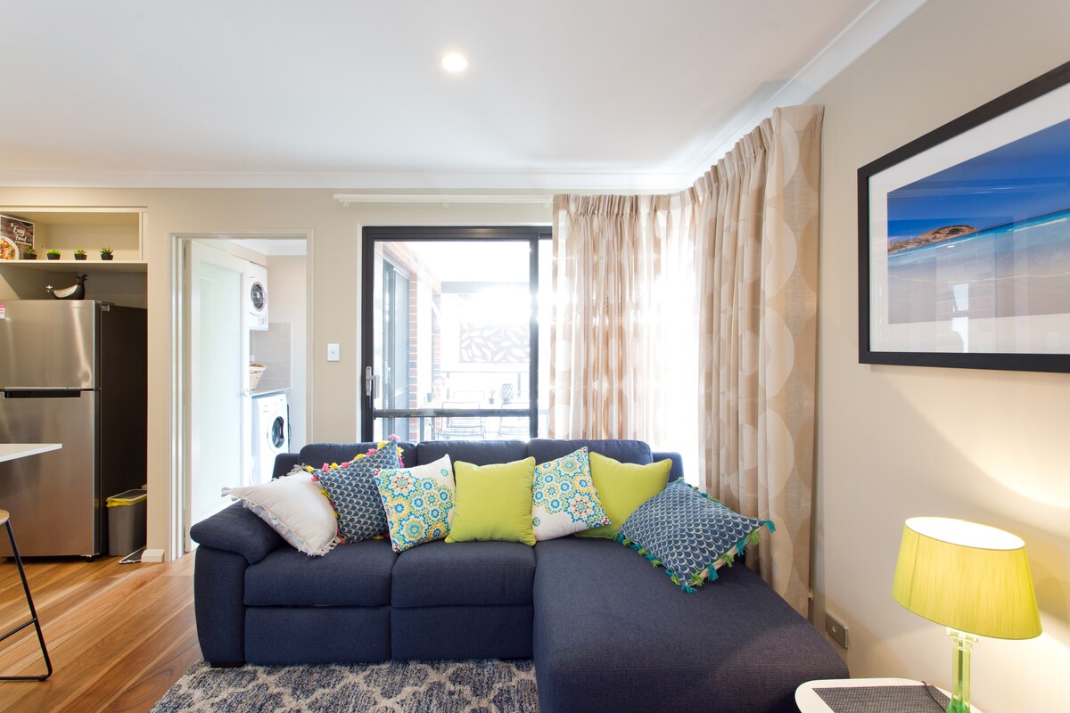 Dobro došli u naš udoban i udoban smještaj! Naš potpuno namješten stan Homely sastoji se od 1 spavaće sobe sa bračnim krevetom i 1 kupatila sa besplatnim bežičnim internetom u objektu. Takođe, obezbeđujemo vam besplatan parking. (Maks. 2,05m razmak) Možete uživati u rijeci Labud koja prolazi pored Sunca! Blizu je međunarodnog aerodroma u Pertu i grada, pa možete bez poteškoća da odete na sva mjesta. Opustite se u ovom mirnom i centralno lociranom mjestu.