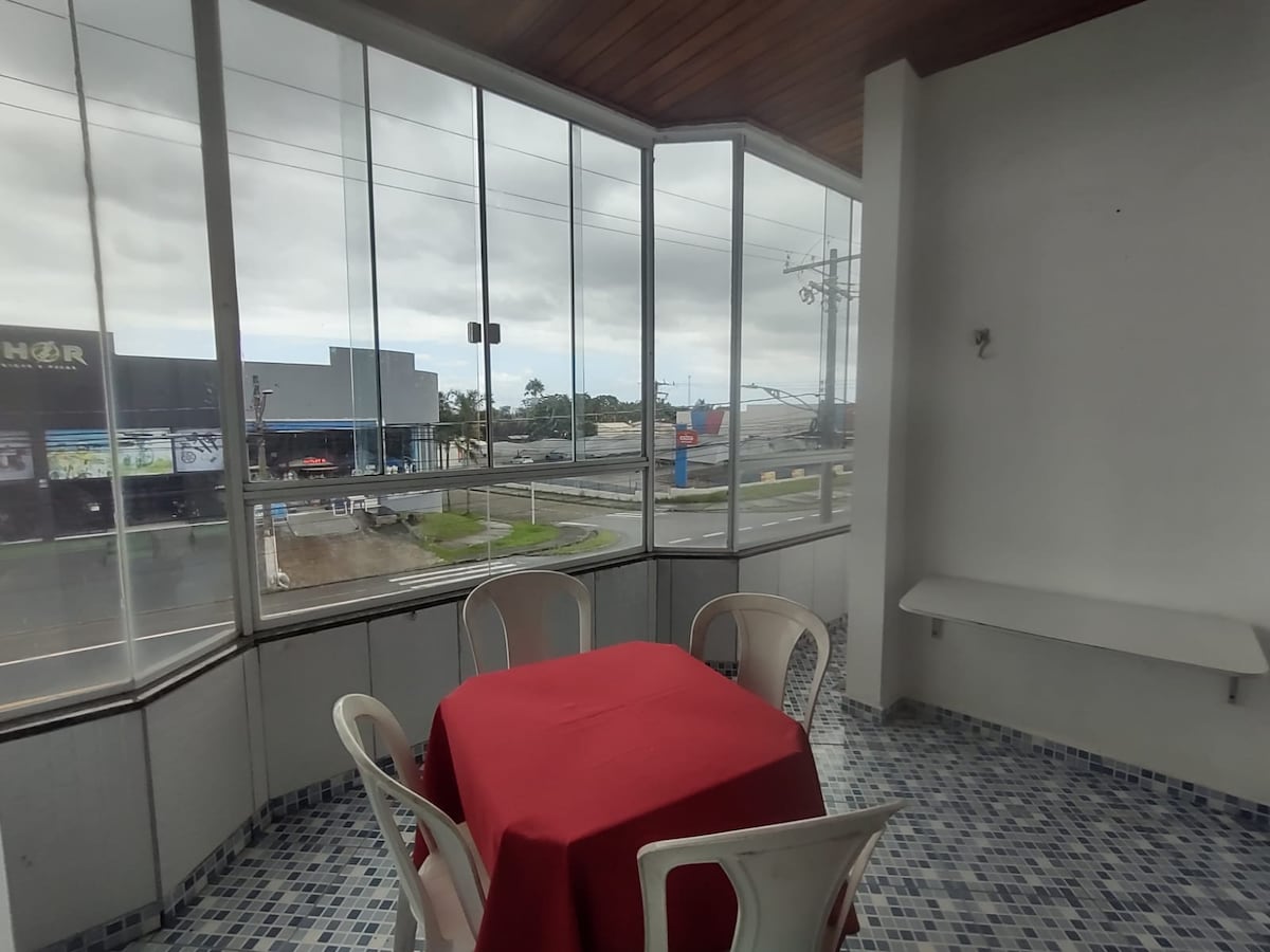 Apê sa garažom, pogledom na more, jednom spavaćom sobom, dnevnim boravkom, kuhinjom, kupatilom, kablovskom televizijom, bračnim krevetom, dva bicikla, higijenskim tušem, frižiderom, šporetom, mikrotalasnom pećnicom, plafonskim ventilatorima. 24-satna kapija, liftovi, Wi-Fi samo u prizemlju, centar Peruibea, u blizini pijaca, kupovina. Može da spava do 6 osoba sa garažom za 1 automobil. Prijava nedjeljom nakon 18:00 Šesta odjava u 8 sati. Druga prijava u 12:00.