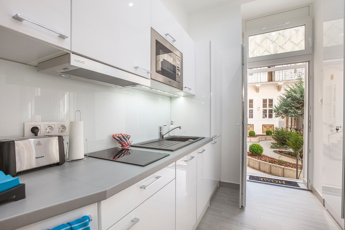 Radujemo se što ćemo ugostiti sve putnike koji su zainteresovani za Budimpeštu. Naš novi stan se nalazi u centru Budimpešte. Velika sinagoga , bazilika, trg Deák i mnogi pabovi i restorani zabavnog kvarta udaljeni su 5 minuta hoda od stana, baš kao i reka Dunav. 3 linije metroa, tramvaja, Hop-on Hop-off autobusa i aerodromskog autobusa 100E su dostupni odmah ispred kuće. Međutim, stan je i dalje tih s obzirom na to da je okrenut prema bašti.