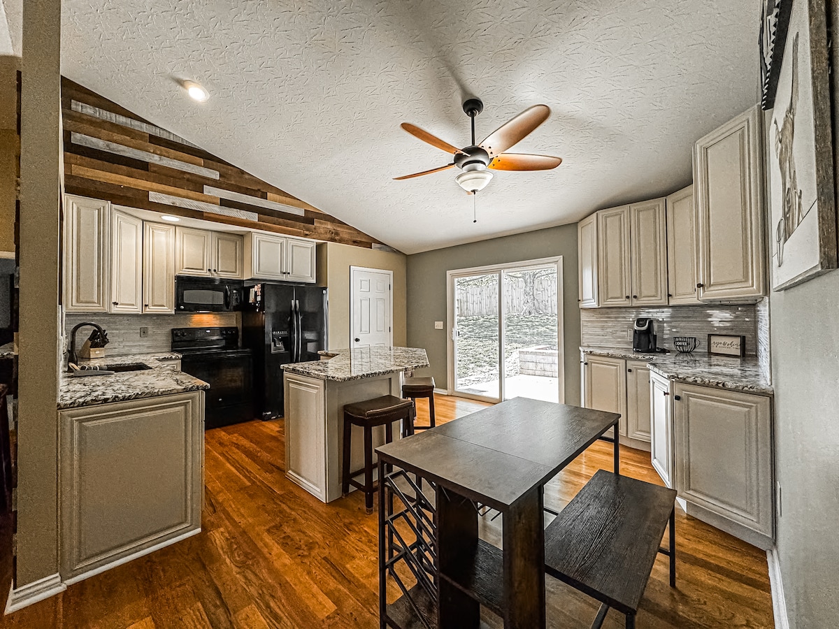 Dobro došli u ovu predivnu seosku kuću koja se prostire na 5 prelijepih hektara u Florensu u Kentakiju. Nalazi se na centralnoj lokaciji između Arka Enkantera i centra Sinsinatija. Uživajte u osamljenom pogledu na prirodu, a da pritom budete na praktičnoj lokaciji odmah pored autoputa I75. Nekoliko minuta do stadiona Bengalsa, stadiona Redsa, parka Ark Encounter, kompleksa CVG, parkova, prodavnica prehrambenih proizvoda i još mnogo toga. Bilo da uživate u jutarnjoj kafi na trijemu koji se proteže oko cijele kuće ili pečete marshmallow kolačiće oko ognjišta – svidjet će vam se boravak ovdje!