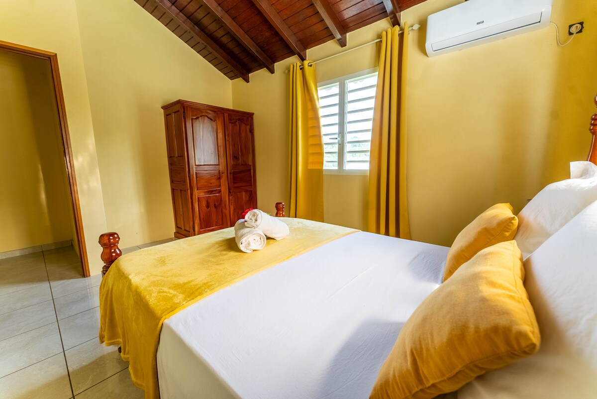 Intiman bazen, panoramski pogledi i okolna priroda: vaše tropsko utočište u Gojavu. Idealna lokacija za istraživanje ostrva, od plaža na ostrvu Grand-Ter do rijeka i vodopada na ostrvu Bas-Ter, prolazeći pored vulkana Sufrier. Uživajte u panoramskoj terasi, klimatizovanim spavaćim sobama, potpuno opremljenoj kuhinji i tuš-kabini u nivou poda, kao i u vrtu. Obezbijeđena je posteljina i rezervoar za vodu (15 dana autonomije) za boravak uz potpuni spokoj. Radujem se što ću vas ugostiti 🌴