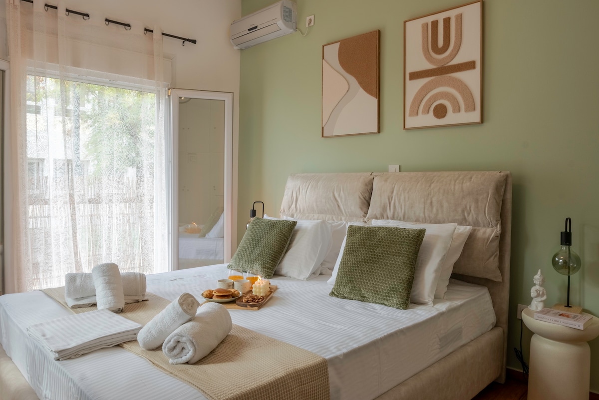 Elegantan stan u Atini, u vlasništvu i dizajnu Neta Dror, dizajnerica i umjetnica koja je prožela prostor svojom ličnom vizijom. Ovaj stan ima jedinstven prostor koji kombinuje stare i nove elemente. Stan ima veliki dnevni boravak sa udobnim kaučem, trpezarijskim stolom i kuhinjom sa svim sadržajima. Spavaća soba ima udoban bračni krevet, a kupatilo iznenađenja i užitci. Ovaj stan je više od mjesta za spavanje, to je mjesto koje možete da doživite.