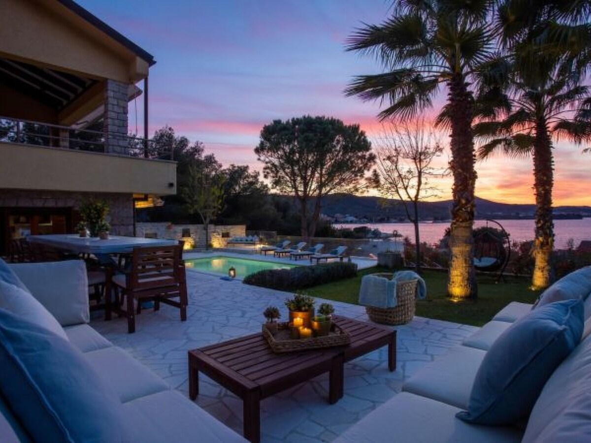 Ova vila se nalazi direktno na plaži. Kuća se sastoji od 5 spavaćih soba, dnevnog boravka sa trpezarijom, potpuno opremljene kuhinje, 4 kupatila, krovne terase sa đakuzijem za pet osoba, saune i teretane. Sve sobe su klimatizovane, a dvije sobe imaju privatno kupatilo. Kuća ima mali teniski teren, fudbalski teren i dječje igralište. Naši gosti imaju privatni parking, besplatan Wi-Fi i roštilj. Svi sadržaji su privatni.