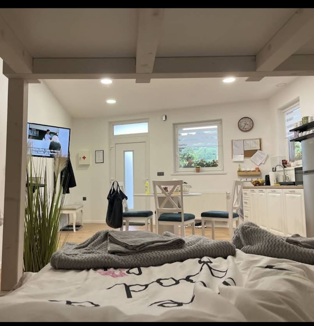 Uživajte u miru Apartmana Mr Guest u srcu Zagorja! Savršen za obitelji i putnike u tranzitu, nudi unikatan dizajn s prostranim "bed-over-bed" krevetom. Opustite se na terasi s pogledom na Strahinjčicu ili istražite Muzej krapinskih neandertalaca udaljen par minuta hoda. Osiguran besplatan privatni parking ispred ulaza i brzi Wi-Fi. Ulaz na autocestu je na samo 2 min vožnje. Vaši kućni ljubimci su dobrodošli! 🐾
