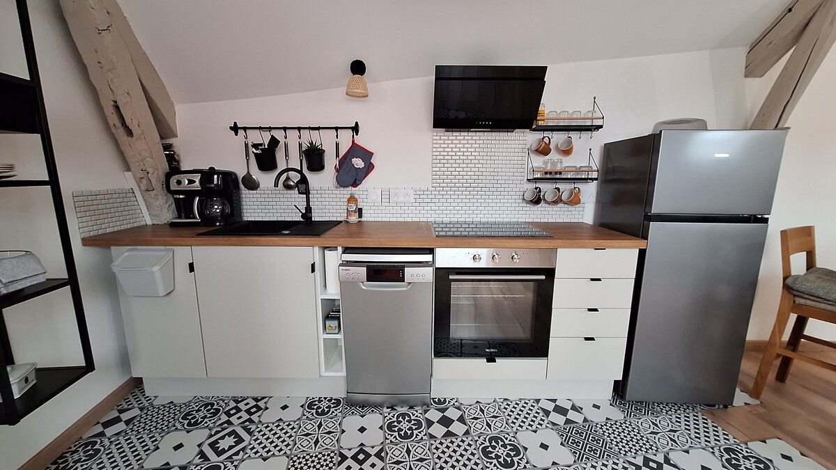 Smješten 10 minuta od Remsa, naš stan se sastoji od velike dnevne sobe, uključujući opremljenu kuhinju, trpezariju, dnevnu sobu sa kaučem na razvlačenje, TV (ravan ekran) i Wi-Fi. Jedna spavaća soba opremljena krevetom dimenzija 160 x 200 i kupatilom sa zasebnim WC-om. Pored toga, imate koristi od bezbednog parkinga (vozila i bicikla) u našem objektu. Zbog higijenskih razloga i alergija, kućni ljubimci nisu dozvoljeni u ovom smještaju.