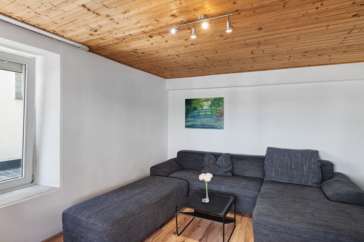 Stan je bio raniji deo naše porodične kuće i sada je odvojen od zadnjih podrumskih soba jednostavnim sklopivim vratima. Idealno je za 2 osobe. Ako je potrebno, dnevna soba može da spava još 2 osobe (bračni krevet na razvlačenje). Kupatilo je dostupno kroz spavaću sobu. Čajna kuhinja u dnevnoj sobi sadrži mikrotalasnu rernu, aparat za kafu, čajnik, toster i frižider. Terasa je opremljena baštenskim nameštajem.
