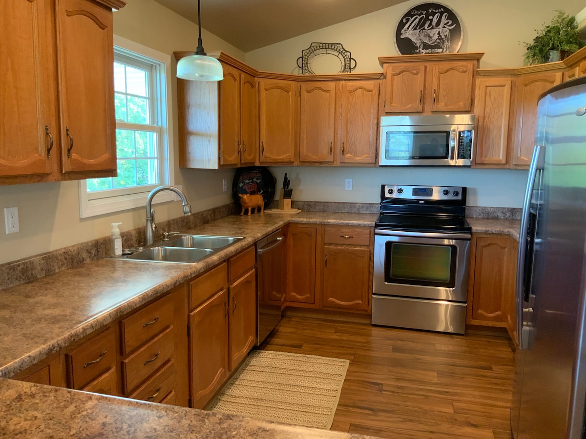 Dobro došli u Double B Ranch Guest House. Graniči sa tri strane granica grada Rolla, na ranču ste sa samo malo kamena iz grada! Umirujuća tišina zemlje koja živi u krugu od nekoliko koraka od našeg grada. Do Missouri MS&T-a se stiže peške peške, 30 minuta od Ft. Leonard Vud. Možda ćete uživati u celom besprekorno čistom domu od oko 1600 kvadratnih metara koji je prilagođen osobama sa invaliditetom. Pogledajte livadu sa zadnje terase dok gledate divlje životinje. Opskrbljeno jezero je dostupno za ribolov!