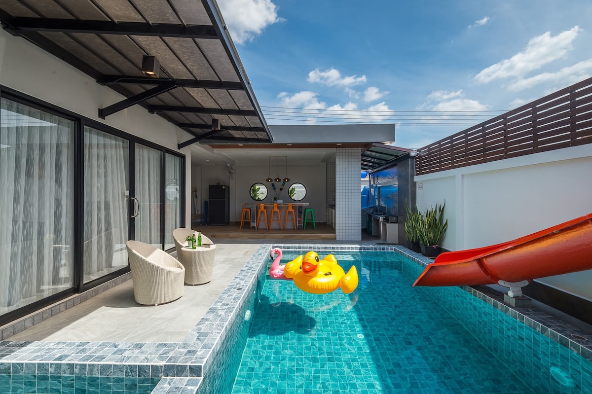 Private Pool Villas with Free Tuk-Tuk – 7 mins to Ao Nang Relax in your own private pool villa in a peaceful area of Ao Nang, just 7 minutes from the beach with our free tuk-tuk service — no need for scooters or taxis. Perfect for families and groups, each villa offers space, privacy, and a calm setting while staying close to restaurants, islands, and day trips. We are a boutique collection of 6 fully licensed villas, managed on-site by our friendly team to ensure a smooth, comfortable stay.