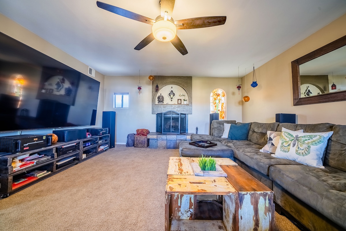 Dobro došli u Tempe! Ovaj 2BR/1BA dom ima sve što vam je potrebno za opuštajući boravak. Potpuno opremljen pametnim osvetljenjem koje se može prigušiti i zvučnicima u svakoj prostoriji, sa nedavno renoviranom kuhinjom i kupatilom koje se može pohvaliti spa doživljajem u kupanju u kadi za namakanje, vešerom u jedinici, brzim internetom, 4K TV-om od 86 in više (sve glavne streaming i 300+ kolekcija filmova, sa uključenim okolinom 5.1.4) i privatnim dvorištem, ovaj dom je savršen za brzo putovanje u grad, filmsku noć ili dan u dvorištu!