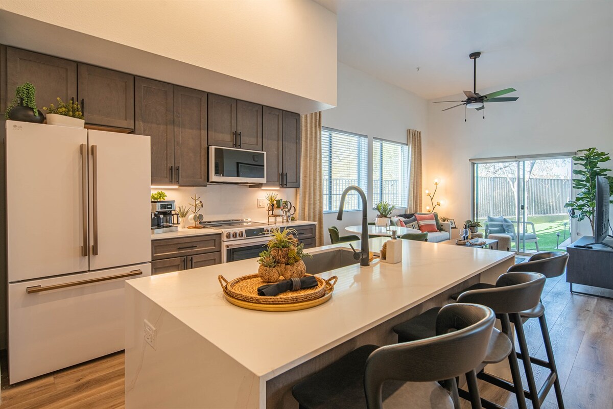 Dobro došli u svoj vrhunski smještaj za odmor u Skotsdejlu. Ovaj zadivljujući objekat nudi nevjerovatno dvorište, stvarajući pravu oazu za vaše uživanje. Izađite napolje i otkrićete prelijepo uređeno utočište sa natkrivenim unutrašnjim dvorištem, pružajući dovoljno mjesta za sjedenje kako biste uživali u sjajnom vremenu Arizone. Kuhinja na otvorenom je posebnost, opremljena ugrađenim roštiljem, pušačem Big Green Egg, sudoperom i frižiderom, što osigurava jednostavno kuvanje i zabavu za vas i vaše goste.