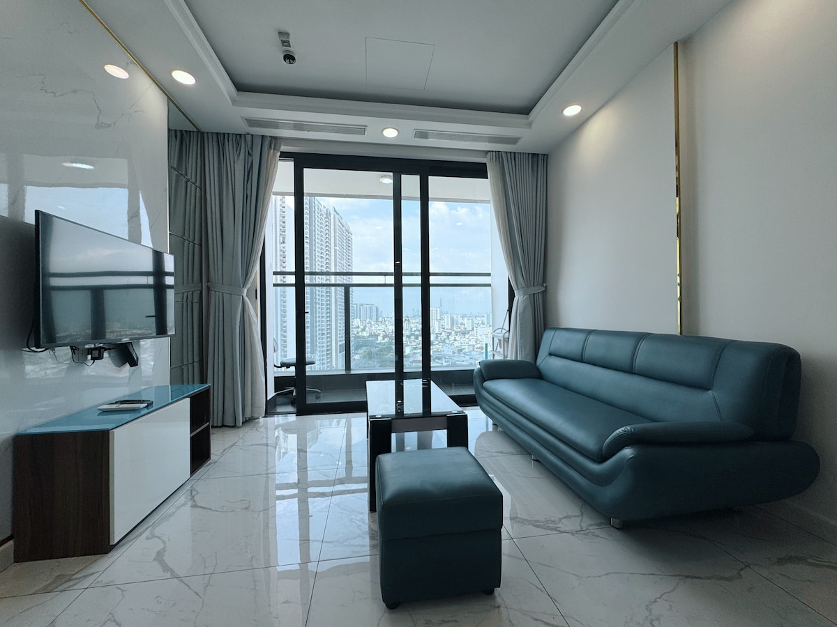 ✨ Posebna promocija s popustom od 8% za duže boravke. Izuzetan urbani život na komercijalnom putu Ngujen Luong Bang. Kreativno središte svjetskog „hibridnog radnog života”, gdje se skladno integriše – rad - doživljaj. - 2BR, 2 kupatila u POTPUNO NOVOJ zgradi. - Naši potpuno opremljeni sadržaji nude sve što vam je potrebno. Možete se opustiti i opustiti uz moderan dekor i toplu atmosferu. - 1,4 km do SECC. - 1,7 km do tržnog centra Crescent. - 8,3 km do pijace Ben Tan.