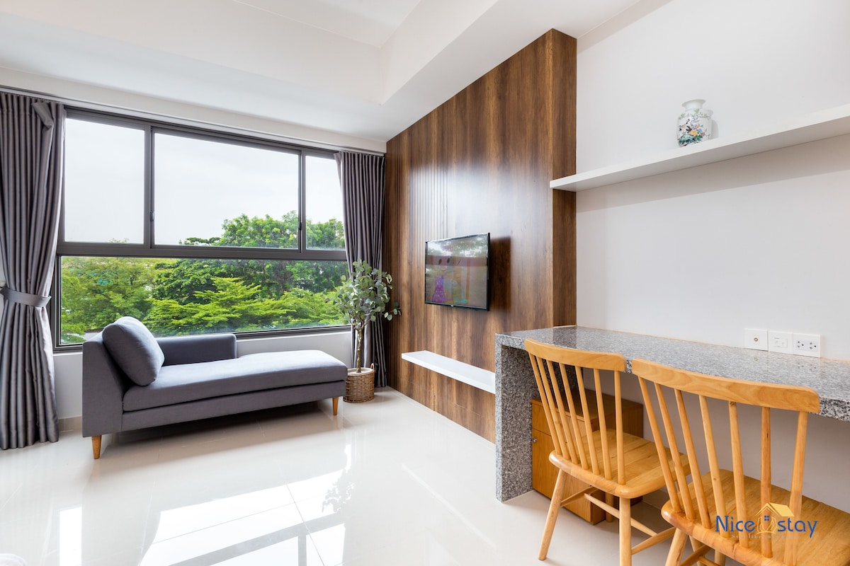 This is a cozy, modern studio with a garden view, just 05 minutes from Tan Son Nhat Airport, located in a quiet, secure residential area. Fully equipped with air conditioning, a kitchenette, a workspace, and a large smart TV, it offers a peaceful stay. Enjoy flexible check-in/check-out with a private automated door system. Just 20 minutes by taxi to Nguyễn Huệ Walking Street and near local restaurants and Hoang Van Thu Park for morning exercise.